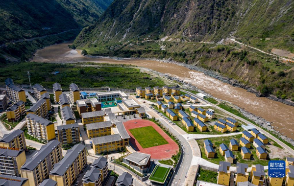 位于怒江边的云南省怒江傈僳族自治州泸水市大兴地镇格力小学(2020年5月18日摄,无人机照片)。新华社记者 江文耀 摄