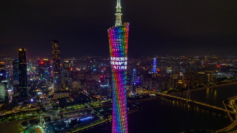 当天晚上,“千里珠江水,醉美白蕉鲈”、“农民增收致富鱼、乡村振兴希望鱼”等字眼在广州塔上次第亮起,灯光闪耀吸引无数人拍照留念。