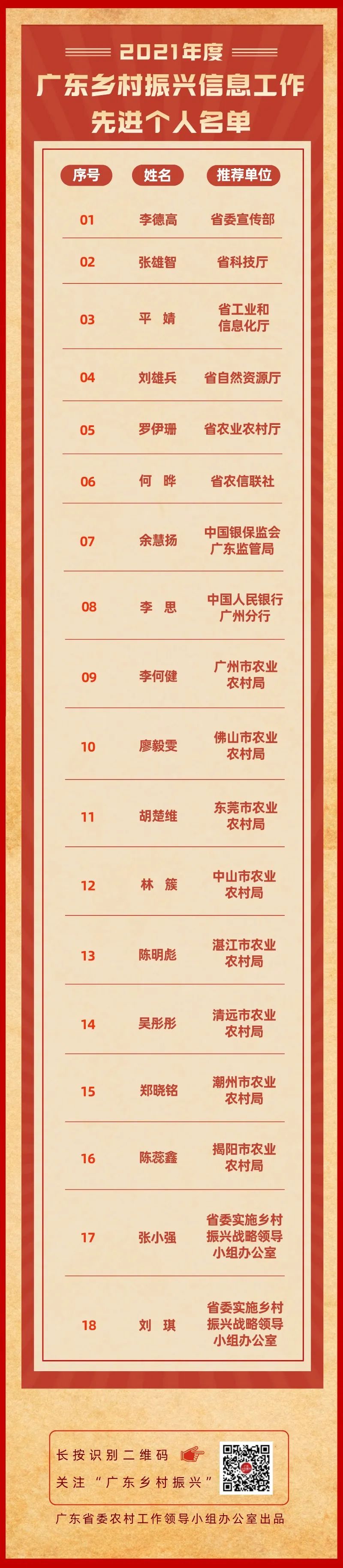 2021年度广东乡村振兴信息工作先进个人名单公布