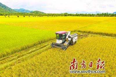 6月27日,珠海市斗门区3.2万亩水稻成熟,农民驾驶收割机在田里劳作。 南方日报记者 关铭荣 摄