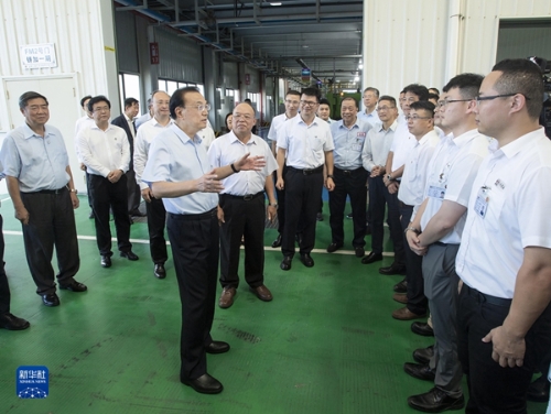7月7日至8日,中共中央政治局常委、国务院总理李克强在福建福州、泉州考察。这是7日下午,李克强来到台资企业六和机械公司考察。新华社记者 李涛 摄