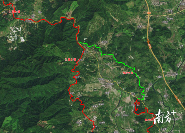 西岸镇西冲水圳、兰管水库流经地理位置。