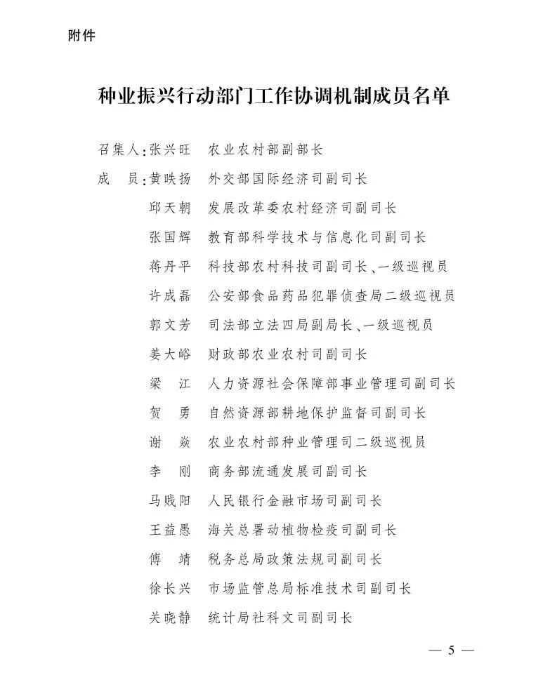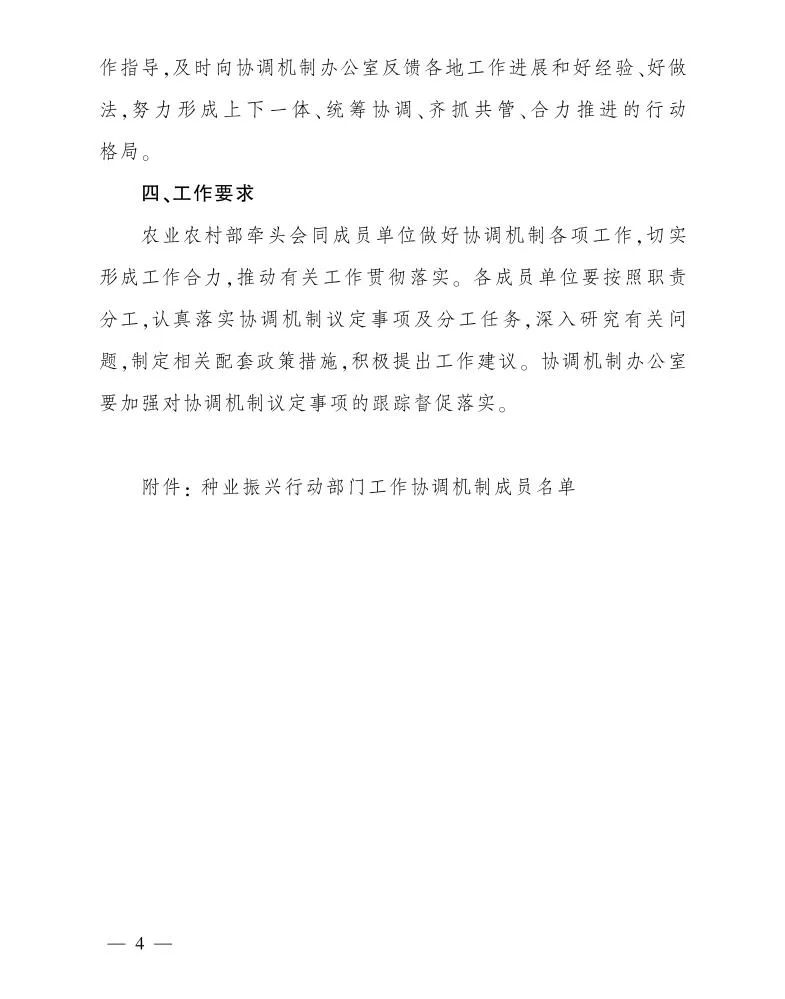 农业农村部关于印发种业振兴行动部门工作协调机制工作制度的通知
